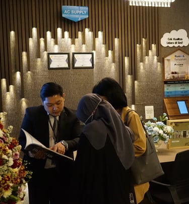Pelanggan menerima bantuan dengan desain AC dan sistem yang direkomendasikan berdasarkan kebutuhan mereka.